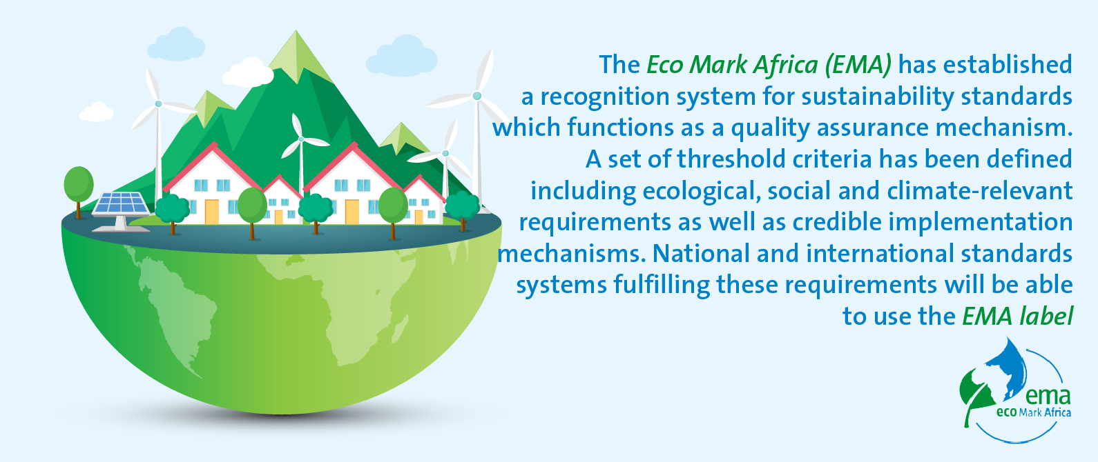 The EMA has established a recognition system for sustainability standards which functions as a quality assurance mechanism. A set of threshold criteria has been defined including ecological, social and climate-relevant requirements as well as credible implementation mechanisms. National and international standards systems fulfilling these requirements will be able to use the EMA label. Using this recognition system, EMA will encourage standards systems to address climate-relevant issues such as product carbon footprints or carbon offsetting schemes, which have often not yet been tackled adequately by existing standards systems. Furthermore, regional and sectoral up-scaling activities of existing standards in Africa will be facilitated. The use of one common label awarded on the basis of clear threshold criteria combines high credibility with the value of African brand recognition. This will improve the image of sustainable African products and thereby foster their trading and marketing opportunities. Creating synergies through reduced marketing expenditure and certification costs, EMA will foster the cooperation of different voluntary ecological and social standards. For the consumer, the approach means enhanced transparency while at the same time maintaining the benefits of competition among the standard initiatives.
